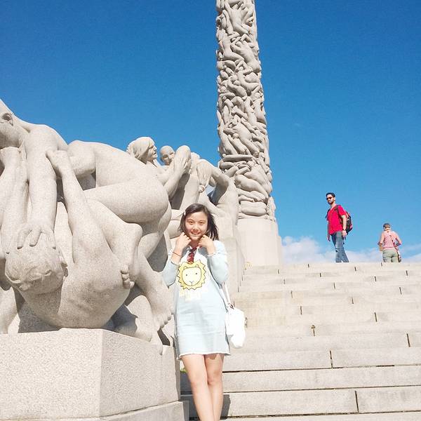 ...后来到了Vigelandsparken,一座以“人生”为主题的雕塑公园。很美丽可是完全没心思参观呀好不好,不过有碰见一队中国来的旅游团,导游大哥很热情的鼓励了我们,说挪威丢东西不要怕没人会拿的,大家素质高高的。