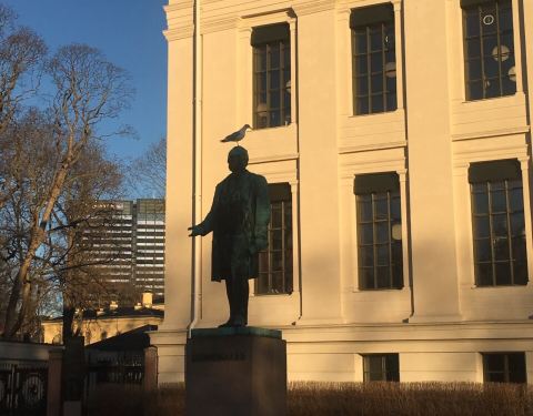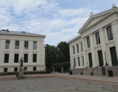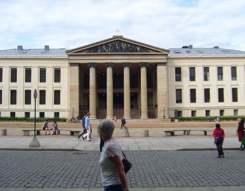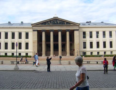 奥斯陆大学是挪威最大最古老的大学,其前身是皇家菲德里克大学,在1946年以前,奥斯陆大学是挪威唯一的大学。这里一共走出过5位诺贝尔奖的获奖者,是一所包含文理科学院的综合性大学。奥斯陆大学始建于1811年,参考了哥本哈根和柏林大学的建造模式。奥斯陆大学的老校园受到普鲁士建筑师Karl Friedrich Schinkel的新古典主义影响,如今只有法学院还守护着老校区,其他学院大多从1930年开始慢慢转移到Blindern校区。老校区位于市中心,就在剧院边,非常容易错过。