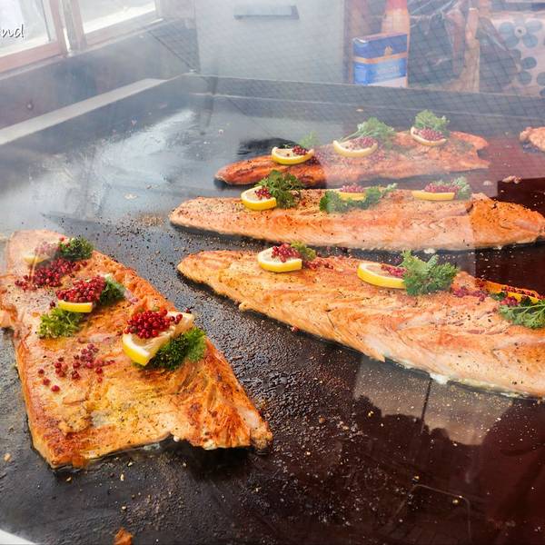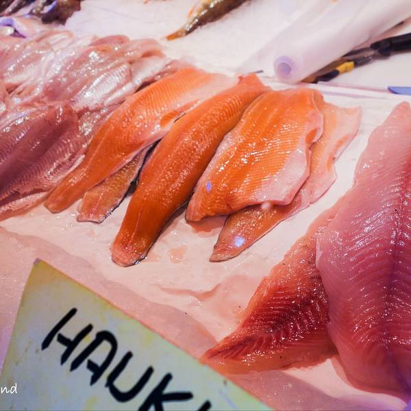 再次返回南码头市场。新鲜肥美的三文鱼——我原计划是带芥末和酱油去北欧的,但是没买到便携装所以作罢……