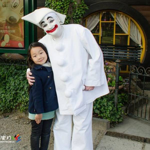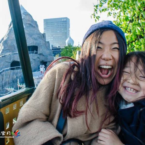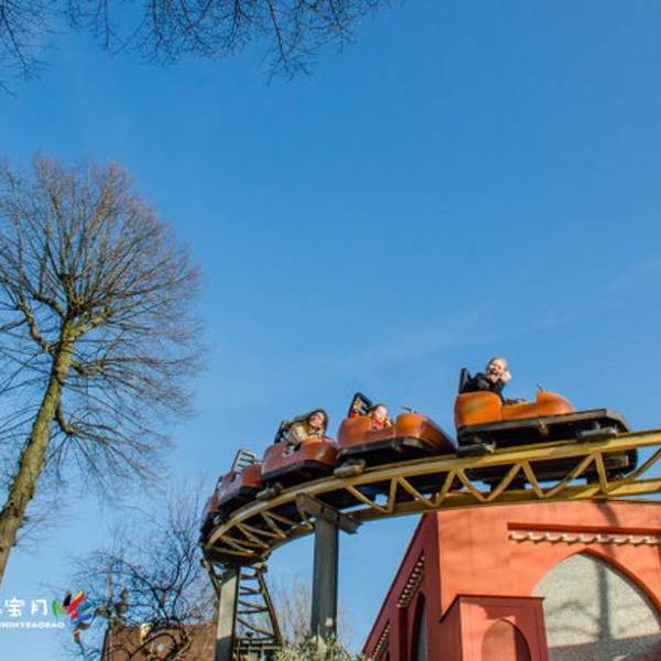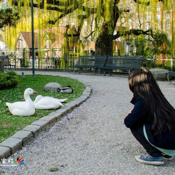 远隔千里,在这偶遇的祖孙俩能够坐在落英缤纷的樱花树下开心地聊天,也是一种难得的缘分,为趣伏里公园和我们的旅行经历又增添了一件趣事。老奶奶很喜欢小动物,拉着小月格格去喂鸭子,还教给她正确的“喂鸭法”。奶奶看了看表,惊呼起来:“快点快点,时间到了啦!那边有哑剧表演呢,很好看哦”。于是,奶奶跑在前面,我们跟随着急急地赶去哑剧院。在“与民同乐”的匾额下,典型中式戏台上是丹麦人表演的滑稽哑剧,时不时逗得奶奶和小月格格拍着巴掌哈哈大笑。表演结束,在奶奶的指点下,小月格格绕到后台去“偶遇”演员晚上7点多,奶奶要回家了,小月格格抱着不让走,老奶奶也很舍不得,这还真是一场难分难解的缘分呢。看着她走远的背影,总觉这位生性活泼外向的奶奶心里有种难以言说的寂寞。有时间,我们也应该多陪陪独自在家的老人。日后,如果你们去趣伏里公园在看到这位老奶奶在散步,也请转告她“小月亮”和她的妈妈一直惦记着奶奶,向她问好。那一天,虽然有了一段童话般的偶遇,虽然欣赏了整个公园的美景,却还来不及体验各种让小月格格心痒的游乐设施了,用他自己的话说:“完全没玩过瘾!”,于是,第二天下午。在结束了哥本哈根的景点游览之后,穿过著名的步行街,小月格格和哥哈旅游局的吴姐姐手牵着手,再一次走进了趣伏里公园。这次,小月格格可是憋足了劲,必须来一次疯狂乐园之旅。