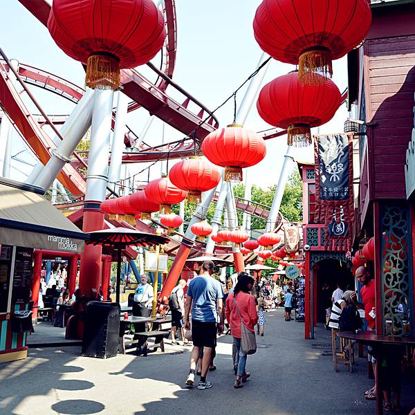 夏天的趣伏里,自然要体验一下各种惊险刺激的游乐设施。我们玩了那个能升到高空中旋转的秋千(好像叫Star Flyer),飞上去的时候感觉周围那些哥本哈根的地标建筑,什么市政厅广场的尖塔、旁边的中央火车站等等,都在脚底下呼啸飞过。其他还有些更“刺激”的游艺项目,因为时间关系就没有尝试,不过看上去真的很好玩。趣伏里游乐园里有一座大舞台,我们去的那天正好有格陵兰来的老爷爷和老奶奶们表演传统歌舞。不过好像那之后前来这里表演的嘉宾越来越高端,前几天Lady Gaga也来了一次,在这座舞台上表演,持趣伏里游乐园门票的游客都可以观看,登时感觉这张门票值了好多啊~~