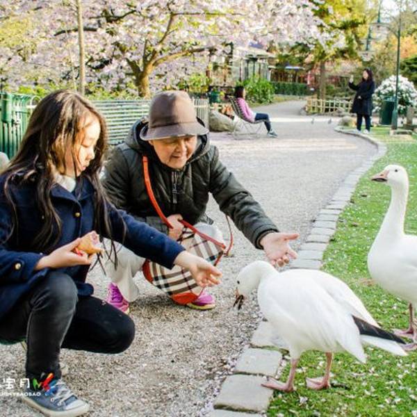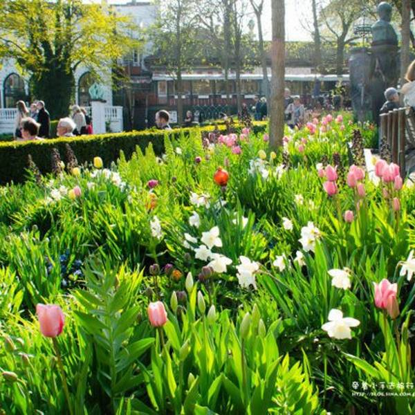 这是一座拥有150年历史的主题公园,世界上历史最悠久、最著名的游乐园之一,据说当年迪斯尼乐园创始人沃尔特迪斯尼多次到访趣伏里公园,从中得到了许多启发和灵感,而创建了迪斯尼乐园。趣伏里公园不仅拥有各种游乐设施,而且还有剧场、影院、音乐厅和各类咖啡馆、西餐厅供休闲娱乐。4月底的丹麦,正是草长莺飞,春暖花开的季节,进入趣伏里公园正门,满眼看到的是热情盛放的花朵,在夕阳底下,他们都闪着柔和的光,微微摇曳着,暗香浮动,让人有种幸福的晕眩感觉。在丹麦,你会觉得到处都很安静,经常在路上看不到一个人影,然而,趣伏里公园不同,这里的游人密度刚刚好,不会觉得拥挤,却也热热闹闹的,很有欢乐气氛。公园里到处是时尚的咖啡馆、餐厅,大家相约着来到趣伏里公园,坐在露天里沐浴着日光,聊天、看报、喝咖啡,享受美妙的下午茶时光,一片恬然与闲适。图:趣伏里公园著名的中国塔坐落在风景优美的湖畔,很有中国味儿图:这里还有很多让孩子们开怀的游乐设施当我们走向花坛的时候,一只孔雀竟然就在我们身边开了屏,抖动着一身艳丽的翎毛旁若无人地追求着孔雀姑娘。这样的场面小月格格可是第一次见呢,兴奋地大呼小叫,但是孔雀抖动翎毛的簌簌声又让她感觉有点怕,始终不敢靠得太近。这时候旁边一个台湾老奶奶走过来鼓励她不要怕,还告诉她孔雀为什么要开屏,小月格格也特别好奇地问这问那,就这样,大家越谈越投缘,老奶奶兴致所至,索性毛遂自荐当起我们的向导来,陪着我们在趣伏里公园闲逛,边走边看边聊天。奶奶是随着远嫁的女儿来到丹麦的,家就住在附近,孙子孙女都长大了,闲来无事,每天在趣伏里公园里散步,赏花,自娱自乐。小月格格和她聊着聊着,突然冲我笑着跑过来:“妈妈,老奶奶老是记错我的名字,她总叫我小月亮,你说逗不逗”,说罢格格格地笑个不停。