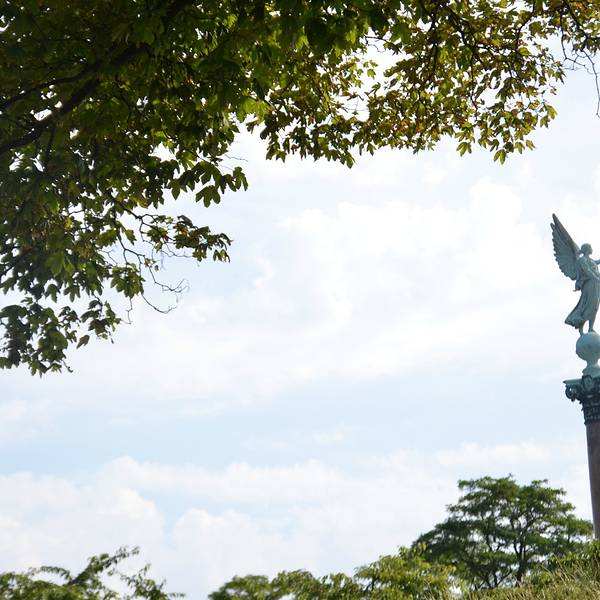 吉菲昂又可以翻译为盖菲昂,这个女神喷泉雕塑和小美人鱼像一样位于哥本哈根市中心东北部的长堤公园内,所以离小美人鱼非常近。其实这里并不是非常有特色,游客却相当多,大概就是因为美人鱼是必游景点,大家顺路过来看看这个喷泉吧。好在我们去的当天天气相当好,蓝天白云还有阳光照耀,衬得铜塑还是蛮美的。【神话故事】吉菲昂其实是北欧神话故事里的一个女神,相传,古代瑞典有个叫Gylfe的国王,答应吉菲昂女神可以从瑞典国土上挖出一块土地,但限时一昼夜,挖多少算多少。吉菲昂女神把她的四个儿子化为四条牛,用犁从瑞典国土上挖了一大块土地,并把它移到海上。于是,瑞典的国土上留下了一个维纳恩湖,而挖出来的土地就是西兰岛。所以,吉菲昂女神被视为丹麦的创世纪女神。 因为这个神话故事,所以雕塑也是由盖菲昂女神和四头牛及套犁等组成的。整个铜塑费时约十年,于1908年完成,非常不容易啊。喷泉从铜牛的鼻孔中喷出,形同垂瀑。1959年郭沫若访问丹麦时写的那首赞美哥本哈根的诗中“四郎岛(即西兰岛)上话牛耕”“泉水喷云海水平”两句,描写的就是这个盖菲昂喷泉。各国游客都有啊,全都在喷泉周边拍照,不过说真的,这里整体环境不错,不同于那种大型建筑,蛮适合拍人像的雕塑的旁边是一座小教堂,好像叫圣艾班教堂,绿荫丛中的教堂环境蛮好的喷泉所在的长堤公园景色也相当美的,尤其是海边旁边还可以看到一个高高的天使雕塑PS:喷泉旁边不远处有公交船站,从那里可以坐船到新港,另外,冬季喷泉一般不开。