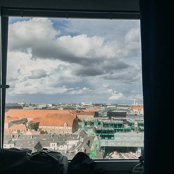 刚抵达哥哈的那天晚上下着雨,也没办法住营地了。就在网上订了一家位于市内的酒店式青年旅社,酒店式青年旅社就是一整座二十多层的现代式公寓里面布置得跟酒店一样,但房间里面是放着可以住6-8个人的上下铺。虽说是上下铺的房间,但是房内整洁,可以俯瞰到整个 哥本哈根 。负一层还有公共厨房提供给客人烹饪,如果不想自己做饭的朋友一楼也有餐厅。青旅靠近斯塔罗里耶购物街和趣伏里游乐场,是很多人到哥哈要去shopping和游玩的地方。我们订了三晚在那里,楼下有少量的停车位。个人来说还是蛮推荐的,但是如果不能接受跟陌生人一个房间的话就还是选择民宿或者酒店。房间里的另一面窗青旅的厨房很宜家了对,就是高高的那栋