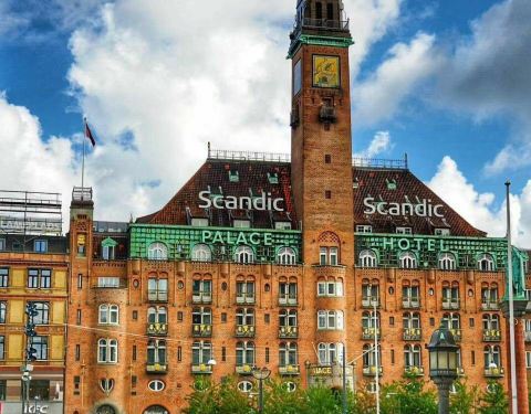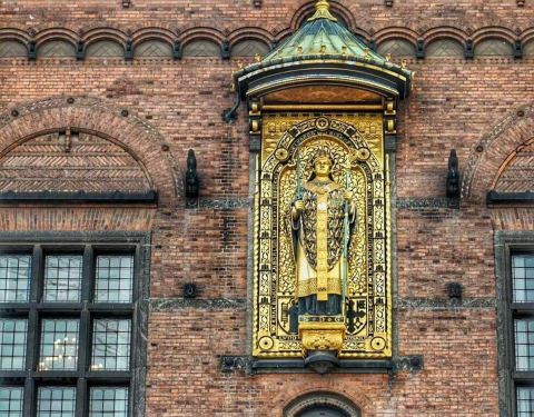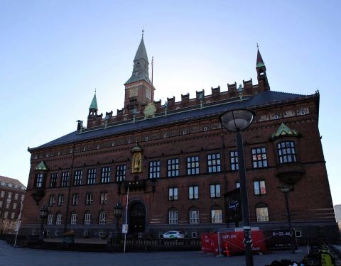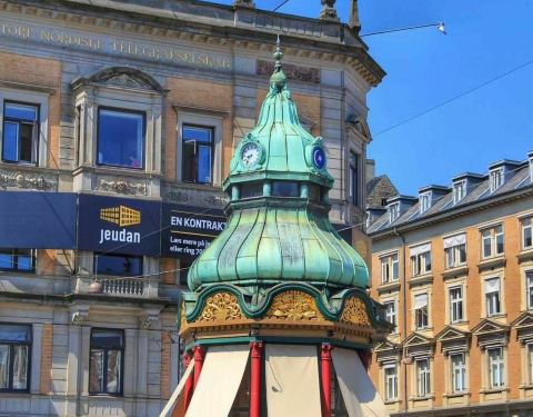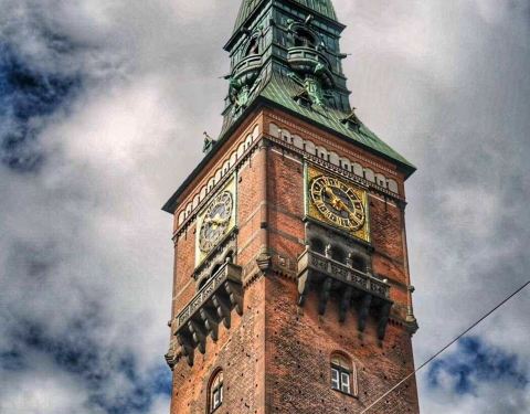 该建筑具有800多年的历史,直至今日,依然会有许多本土以及来自南美的商贩,从午后开始在广场上罗致摊位、兜售货品,接踵而立的胜景让人目不暇接。倘若登上广场内高达110米的钟楼之上,整个哥本哈根的市容便可尽收眼底。钟楼门的上方有一架的“世界钟”,内有13套机械装置同时运行,显示着全球各地时间以及各种天文时间。广场上的市政厅建于1905年,由建筑师马丁纽阿普设计,其建筑结合了古丹麦与意大利文艺复兴时期的风格。富丽堂皇的市政厅大厅面主要用于结婚典礼和官方接待,市政厅正门上方的镀金塑像是哥本哈根的奠基人——阿布萨隆大主教,丹麦的许多重大活动都在市政厅广场举办。