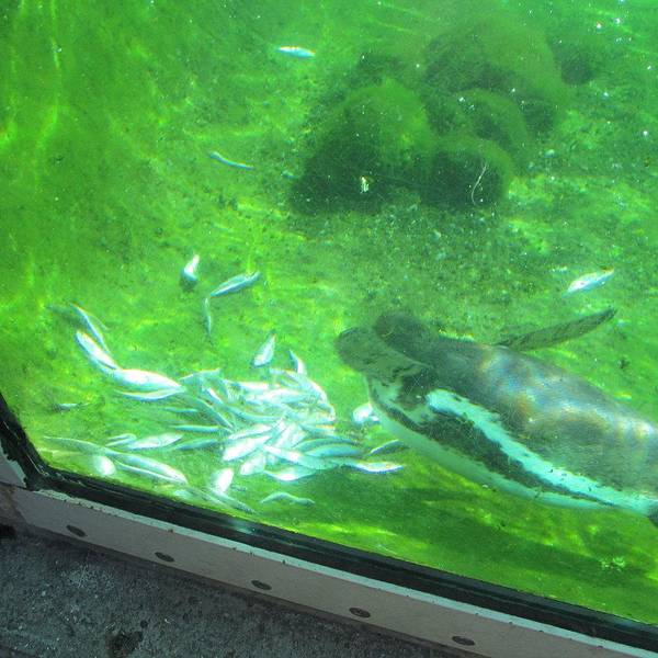 因为空间太小,所以他只可以在那个小小的水池里,转身,起身,换气,转身,起身,换气。