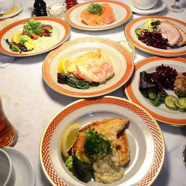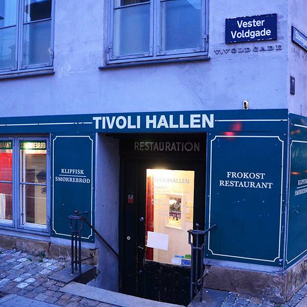 看过吉菲昂喷泉,时针已经指向两点多了,我们也饥肠辘辘,该吃午饭了。这顿饭我们选择了传统的丹麦餐厅“趣伏里餐厅Tivolihallen”。餐厅的位置就在市政厅广场东侧,国家博物馆斜对面的街角处。从吉菲昂喷泉附近坐1A公交车不到10分钟,还在Glyptoteket站下,往回走几十米就到了。 这家“趣伏里餐厅Tivolihallen”是《走遍全球》推荐的,说中这么说:“趣伏里餐厅是一家1791年开业的百年老店,具有200多年的历史。餐厅的菜品价格非常诱人,当地人百吃不厌的传统丹麦菜仅需要50DKK左右,服务员热情周到,广受顾客的好评”。其实并没有这么便宜,一般的主菜价格在70~90DKK,应该是物价上涨的因素了。