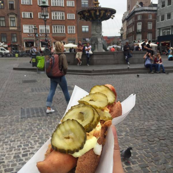 逛完克里斯蒂安堡宫,我们决定在出发去机场前吃些点心。所以我们就出发去了心心念念的La Glace 蛋糕店。路上还经过了鹳鸟喷泉。La Glace 建于1870年,是丹麦最古老和美味的甜食店。目前已经经营了6代人,还曾获得过米其林星级,位于著名的步行街(Strøget)附近。我们点了鼎鼎大名的Sports Cake和一个巧克力慕斯。Sports Cake真的很特别,绵密的口感和香浓的奶油。怕甜腻的话,搭配一杯黑咖啡,就很刚好。我们还外带了当天现烤的Cookie带回英国送朋友,盒子很漂亮,饼干也很好吃。回酒店的路上我们还买了路边的热狗~热狗很脆,料好实在。
