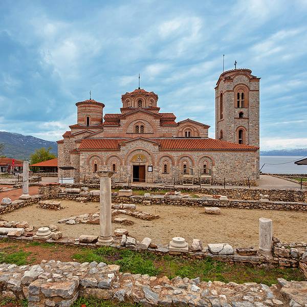 这座圣索菲亚教堂是奥赫里德最大的教堂,有着900多年的历史。教堂四周围绕着许多根罗马式的圆柱,整体建筑都是用巨石垒砌而成。教堂内还有精美的壁画,但是不允许拍照,这里经常会举办美妙的音乐会,晚上晚风吹动...