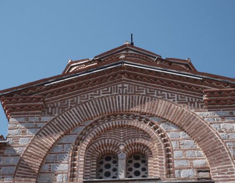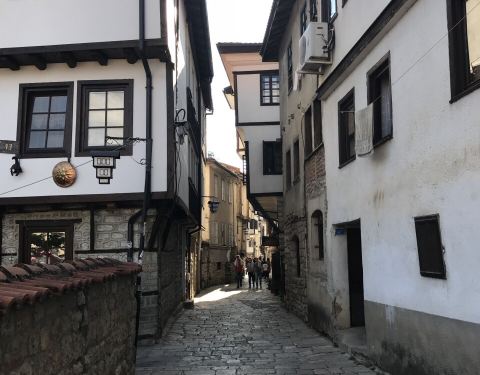 在Ohrid古城现存的20多座教堂中,著名的要数圣索菲亚天大教堂。这座教堂修建于11世纪,是Ohrid最大的教堂。教堂由数根罗马式圆柱支撑,装饰有相当精致的拜占庭式壁画。由于这些壁画已有800多年的历史,属于国宝级精品,因此教堂内部是不允许拍照的。时至今日,这座大教堂还常常做为音乐会场使用。