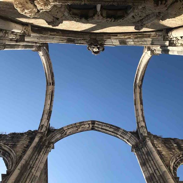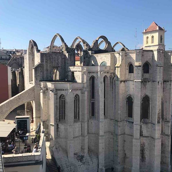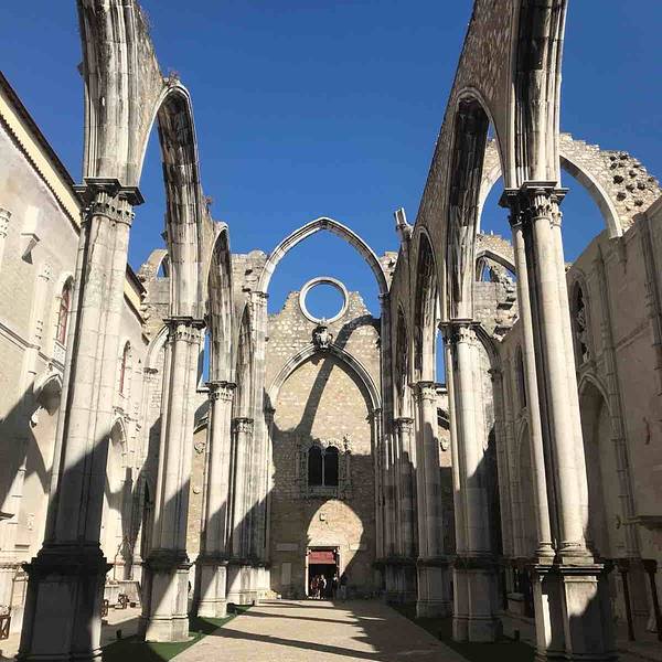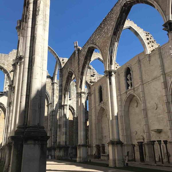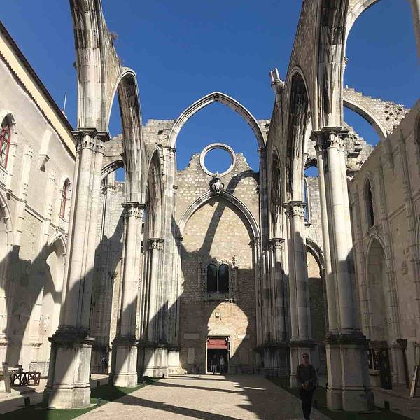 与升降机顶层相连的卡尔莫修道院(Convento do Carmo)是葡萄牙里斯本的一座历史建筑,典型的哥特式修道院在1755年里斯本大地震中成为废墟。误打误撞的我们居然找到了从这里免费不用排队上圣胡斯塔的路。