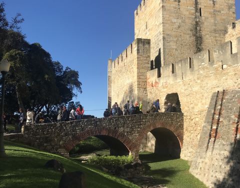 圣若热城堡是里斯本古老的建筑之一,是里斯本主要的历史古迹和旅游景点。城堡建在阿尔法玛地区的高点,是中世纪摩尔人占领里斯本时的要塞,因为位于居高临下的山坡上,几乎在里斯本的每个角落都可以望见它的身影。 城堡原本属于更早期的西哥特人,摩尔人入侵后,对其进行了大规模的扩建,厚达8米的城墙至今仍令人感到气势非凡。在这里人们可以更好地欣赏城市的建筑艺术,无论是从阿尔法玛到远处市区的未来主义城堡和吊桥,还是城市中卡尔莫教堂的露天废墟,都可以一览无余。
