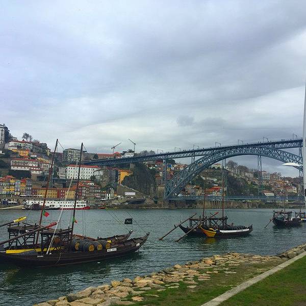 里斯本如果坐火车到波尔图的话,会到城郊的PORTO CAMPANHA火车站,离老城有一丢丢距离(波尔图的地铁并不是很方便,路线比较少买票也麻烦,所以如果两三个人出行的话建议打出租车,到老城基本上就8欧的样子,方便快捷~)好山好水好桥,相比于里斯本壮阔的大河,穿过波尔图的杜罗河显得更加小巧迷人。第一次见到这种构造的城市是伊斯坦布尔,欧洲区与亚洲区被博斯普鲁斯海峡分隔开,而加拉塔桥则轻盈地架在两个城区中间,无论在城市的哪个角度,都能看到非常美丽有气势的景色。有水有桥还不够,还要有山,层层叠叠的房子,夹杂着酒庄的小船和海鸥,在河岸的另一边看去,真的特别有味道。