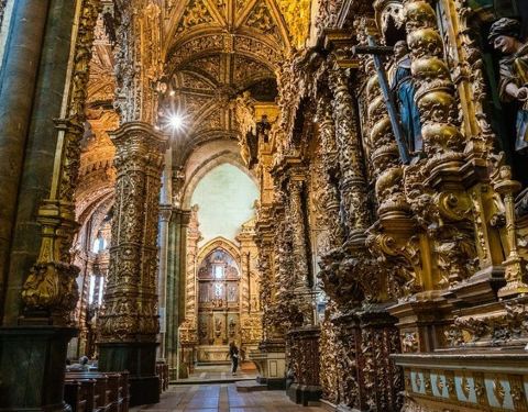 教堂的后殿和通廊中巴洛克风格的祭台,都是葡萄牙难得一见的作品波尔图最突出的的哥特式建筑,并以其内部极尽奢华的巴洛克式装修而闻名于世,是波尔图老城区世界遗产的一部分。黄金镀满了教堂的墙壁、柱子、屋顶,教堂内部装修成了天下最奢华的巴洛克风格。教堂的后殿和通廊中...波尔图最突出的的哥特式建筑,并以其内部极尽奢华的巴洛克式装修而闻名于世,是波尔图老城区世界遗产的一部分。黄金镀满了教堂的墙壁、柱子、屋顶,教堂内部装修成了天下最奢华的巴洛克风格。教堂的后殿和通廊中巴洛克风格的祭台,都是葡萄牙难得一见的作品。 展开