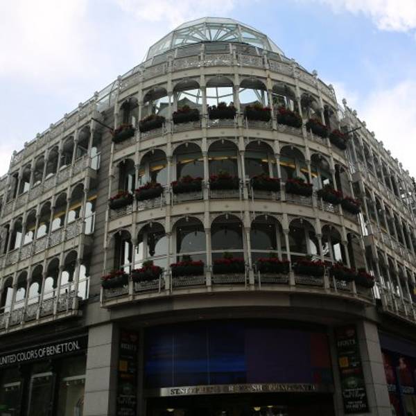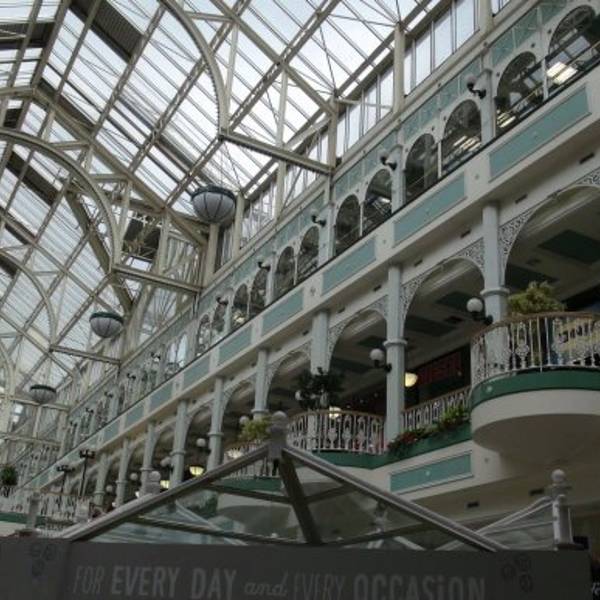 在格拉夫顿大街的最南端这个长的像花房的建筑是圣斯蒂芬购物中心(St Stephen's Green Shopping Center)。