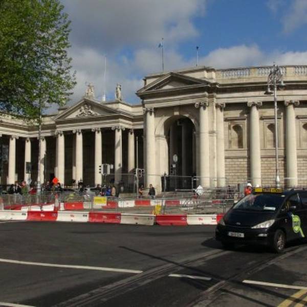 从圣三一学院的正门出来,右手一侧的道路的北面就是爱尔兰银行大楼。这个壮观的建筑建于1729年,是全世界第一座专门为议会修建的建筑。整个建筑以帕拉第奥(Pallsdio)工整严谨的风格为基调,建筑主体呈半圆形,...