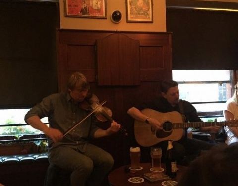 这两个为我们导游的家伙是很好的音乐家。我希望我们听过他们更多的作品。那是一个星期五的晚上,所以Temple酒吧已经热闹非凡了,即使活动大约在七点半开始。那晚一些酒吧很在意一组客人的多少。团客会被带至特殊区域,而不是“酒吧”楼下的主场。