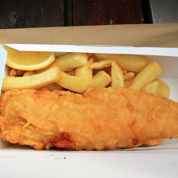 这家叫做Beshoff Fish & Chips的百年老店,就在大柱子边上,路东向南的角上。这家店里的食物非常简单,就是鱼和薯条。