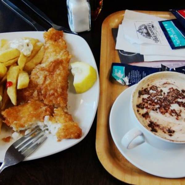 在Howth有一家非常有名的Fish&chips店,叫Beshoff Bros。 店主人叫Beshoff,曾经参加过战争,退伍后开了这家Fish&chips店铺。店铺历史已经有半个多世纪,在当地非常的有名气,在Howth就有2家,一家可以在店内就餐,一家外卖,如果去的晚了就要排队。 Fish&chips 是使用的当地的土豆和海里捕捞的鳕鱼。 爱尔兰人爱吃土豆,土豆出现在各种配菜里,土豆可以做成土豆条,土豆块,头豆泥,反正,他们深深热爱着他们的土豆。 一百多年前,就是因为没有了土豆,他们发生了大灾荒。 爱尔兰人多吃三文鱼和鳕鱼,这两种鱼都没有刺,我有时会去亚洲超市买海鲫鱼,这种鱼类似于国内的胖头鱼,肉不算嫩,但是很接近国内的河鱼。 有时我们也会用烤箱烤制三文鱼,撒上国内带来的孜然辣椒一类的调料,味道很好,鱼是当地的鱼,做法却是正宗的中国做法。 有人说,在英国只有三种菜,一是Fish,二是Chips,三是,Fish&Chips。 我们在Howth吃的这个Fish&chips是我两吃的第一个正宗的Fish&chips,鱼鲜不腥且嫩,土豆炸的刚好,挤上柠檬撒上盐(听说还可以加酱),味道鲜香。 刚到初中时,我的英语老师说,这个Fish&chips翻译就是鱼炸土豆条。 我多年来一直奇怪,什么是鱼炸土豆条,如今终于明白了。 那时,我们练习个对话,问,你今天吃的什么,答,鱼炸土豆条。现在想想可能想表达的意思是,今天吃的土豆丝吧。 今天,终于吃到了真正的Fish&chips,吃到并没有什么了不起,只是,体验吧。
