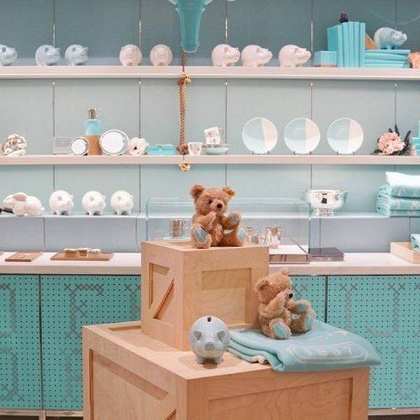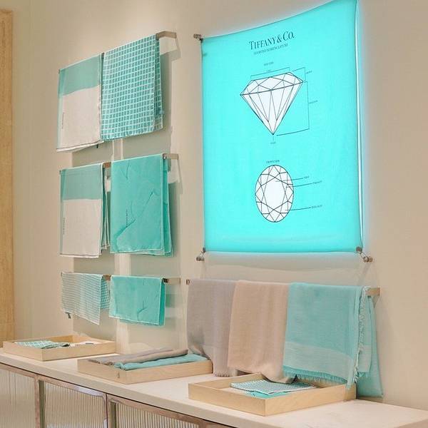 还记得赫本在电影《蒂凡尼早餐》里穿着小黑裙站在tiffany橱窗前的经典场景么?当年女神还是站在tiffany的橱窗前啃面包,而现在我们居然可以真正在这里享用一顿蒂凡尼早餐了。餐厅Blue Box Cafe在tiffany第五大道旗舰店的四楼,平时早上10点开门,周末延迟到12点。 就餐的话是需要提前在官网上预约的,不接受直接去吃。早餐29刀/位,午餐39刀/位,下午茶49刀/位。tiffany blue简直太少女心了~ 我们一边看着一边在感慨,四楼还有间tiffany的办公室,整个房间都是tiffany blue,还有所有的相关产品,简直不要太好看,在这里上班太幸福了。