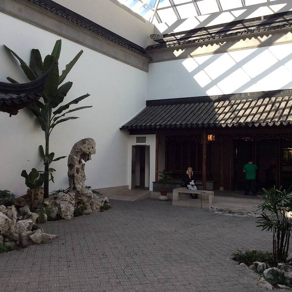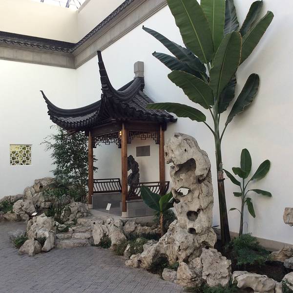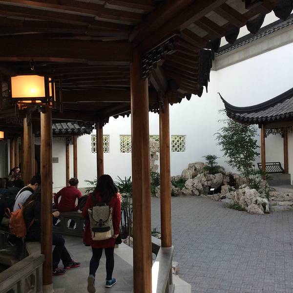 之后逛了中国馆,小幅画卷很精美很吸引人,内容并不复杂,容易理解,第一次感觉和艺术品的距离这么近,印象每次看电视的宝物鉴定,但并不觉得有太多艺术感,这次真心觉得很赞!其中,最令人耳目一新的是一个苏州园林式的小庭院,一面是小亭,一面是长廊,一面是古代江南的房间布局,中间是小的庭院,上方还有天窗,阳光洒进来,很有感觉。很佩服博物馆可以把展馆本身和展出品自然而然滴融为一体。