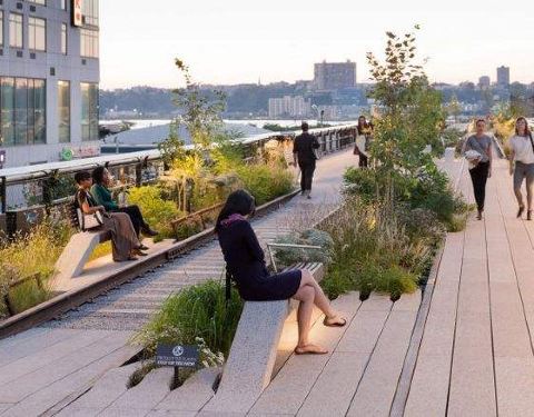 穿城而过的高架公园,高楼大厦中的休闲地。