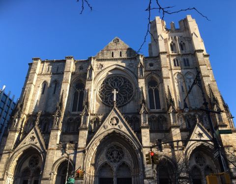 纽约圣约翰神明大教堂是圣公会纽约教区的主教座堂,位于曼哈顿晨边高地的阿姆斯特丹大道1047号,是纽约有名的游览胜地,号称世界较大的圣公会教堂、.此教座堂于1888年设计完成,1892年开工建设。建设过程中,经历风格的改变和两次世界大战的中断,至今尚未完成,仍在持续建造中。1909年座堂圆顶完工后,原本设想的拜占庭兼罗马式建筑设计被换成法国哥特式建筑风格,因此座堂的中殿以及半圆形的拱顶房间为哥特式,而座堂圆顶下的十字点仍保留罗马式建筑风格。