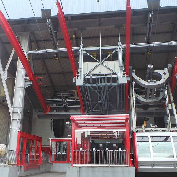 罗斯福岛空中缆车 ,是一条横跨纽约市东河,连接曼哈顿岛和罗斯福岛的缆车系统,启用于1976年,由罗斯福岛营运公司营运,每辆缆车至多可载客125名,自岛上到曼哈顿大约5分钟可达,每日平均运行115次。费用也相当于纽约地铁的票价。在2006年12月波特兰空中缆车开通前,该系统是北美洲唯一的通勤缆车系统。