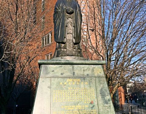 孔子的塑像就在曼哈顿的唐人街,这也是我们中国人的骄傲。