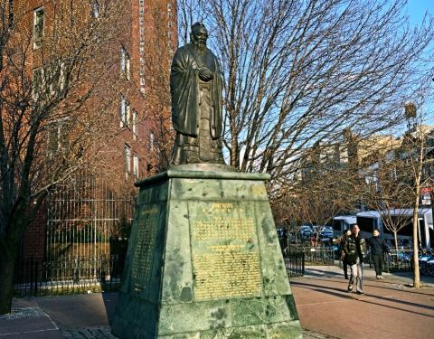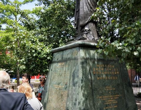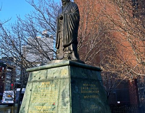 来到中国城自然是要来看一下这座孔子塑像 (Statue of Confucius)的。在全世界最有名的的华人之一就是孔子了吧,美国很多高等学校都设有孔子学院。中国城的这个孔子塑像就在一个街道交界口的位置,时而会有一些人路过时仰望一下。如果来到纽约的中国城,来见一下这尊孔子塑像,也是不错的。