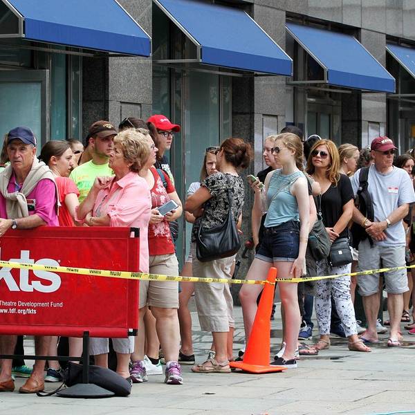 TKTS,适合临时想买折扣票看当天百老汇戏的游客。纽约有三家,时代广场的TKTS据说人很多难排队,所以我来华尔街附近南街海港的这家TIKS买当天晚上的《歌剧魅影》。十点五十到的,门口已经排了一队人。