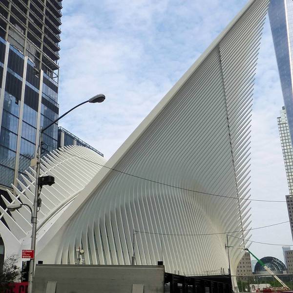 直对地铁站+购物中心,也是新的网红坐标:The Oculus。像一个骨架腾地而起,但是又圣洁震撼。也是为了纪念而立。(图四)