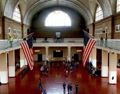 拍了很久很久的照片之后,我们终于出发去Ellis Island啦这就是以前的移民署大厅拍了很久很久的照片之后,我们终于出发去Ellis Island啦