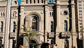 离开自由钟广场系列,感觉已经经受了费城精神的洗礼,剩下的旅程就随便偶走走了。所以顺着小路走着走着,不一会儿就来到了风格很突出的市政厅。仰视也是壮观,整个很宫廷感。背后是最繁华的的商业街之一,远处还...