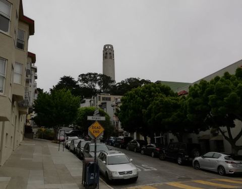 ...,爬到塔下的斜坡真是陡,好不容易到了,天气不给力还下起了小雨,从这里可以俯瞰市区和海湾还有大桥柯伊特塔位于旧金山市中心的高处,爬到塔下的斜坡真是陡,好不容易到了,天气不给力还下起了小雨,从这里可以俯瞰市区和海湾还有大桥