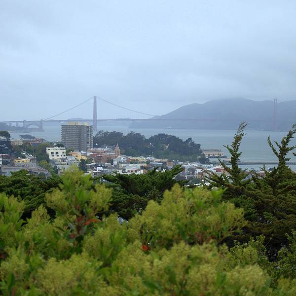 电报山Telegraph Hill是旧金山市区海拔较高的高点。从旧金山市中心可以乘坐公交车到附近,依然需要走一段坡度较大的山路才能到达。如果开车就方便很多,可以直接开坡路到电报山附近的停车场。从这里可以俯瞰旧金山市中心的全景,赶上能见度高的天气,金门大桥十分显眼。俯瞰山下的风景相当的美丽。除了金门大桥,你还能看到海中的小岛,那就是有名的恶魔岛Alcatraz Island,这个有名的海上监狱一直能引起游人的好奇,驻足观望很久。科伊特塔(Coit Tower)位于电报山山顶的先锋公园(Pioneer Park)。这个塔一层对外开放,有一些图片的展示。如果想进入塔内需要单独购票参观。其实在塔的外围就可以俯瞰山下风景,倒没有必要非要进入塔内参观。