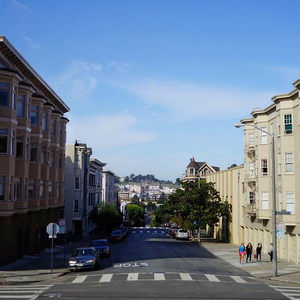 小哥说现金买票可以,卡的话就不清楚啦~我想了想,游客哪顾得上那么多,要看到总得看啊~开啊开的差不多了,旁边一群泰国少男少女在McAllister/Fillmore St叽里咕噜下车了,估计也是游客。我看了眼地图在下一站 McAllister/Pierce St 下车,因为我还想看一眼美丽的阿拉莫广场Alamo Square。