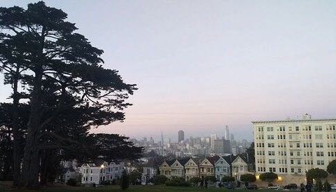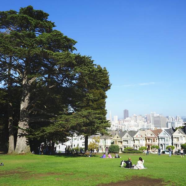 可惜我们去的时候公园正在整修,几乎就没有可以立足的地方,只得在房子前做做样子就撤了。再见旧金山离开旧金山的最后一站是阿拉莫广场,这里有历史悠久的维多利亚式建筑: 彩绘仕女,并且背景正好是三藩市中心的摩天大楼们。试想一下,三五成群的文艺青年在公园草地上嬉闹,啤酒瓶与单车散落一地,看着前方历史与...离开旧金山的最后一站是阿拉莫广场,这里有历史悠久的维多利亚式建筑: 彩绘仕女,并且背景正好是三藩市中心的摩天大楼们。试想一下,三五成群的文艺青年在公园草地上嬉闹,啤酒瓶与单车散落一地,看着前方历史与摩登同框的风景,贪婪的呼吸一口午后的慵懒空气,会醉死在这里么。
