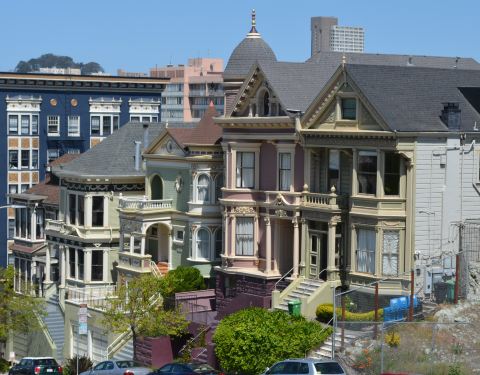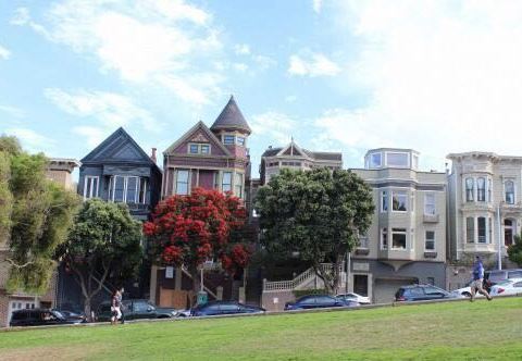 如果喜欢摄影,这是必来之处,当然来之前别忘check天气预报!除了6姐妹,这周围的居民区是继北滩之后的三藩第二赞居民区,美丽、妖娆、高贵、热烈的洋房比比皆是,够你快门按到手酸。其实“Painted Ladies”是这种用色丰富艳丽、风格古典又俏皮的维多利亚或爱德华风格彩屋的统称,这两种风格闻名便知来源于英国,但称呼却是美国本土的特有叫法。