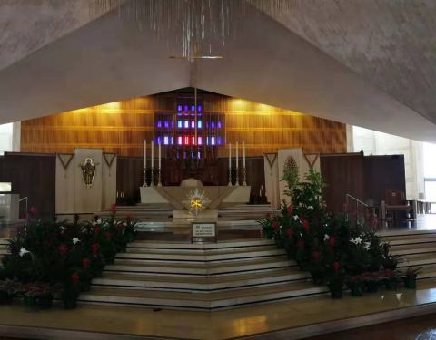 是的,不要疑惑,这就是大教堂。这是出自著名的华人设计大师贝聿明之手,够现代吧?当然其内涵不仅是现代,而是现条感和大气。内部和大部分教堂还是比较相近的。