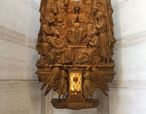 顶部是巨大的透光十字架,现代与传统完美融合。