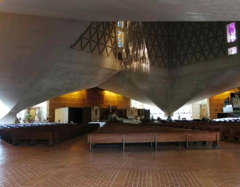 这座圣玛利亚大教堂与其他欧陆式教堂的主流模样有很大不同,风格颇为后现代