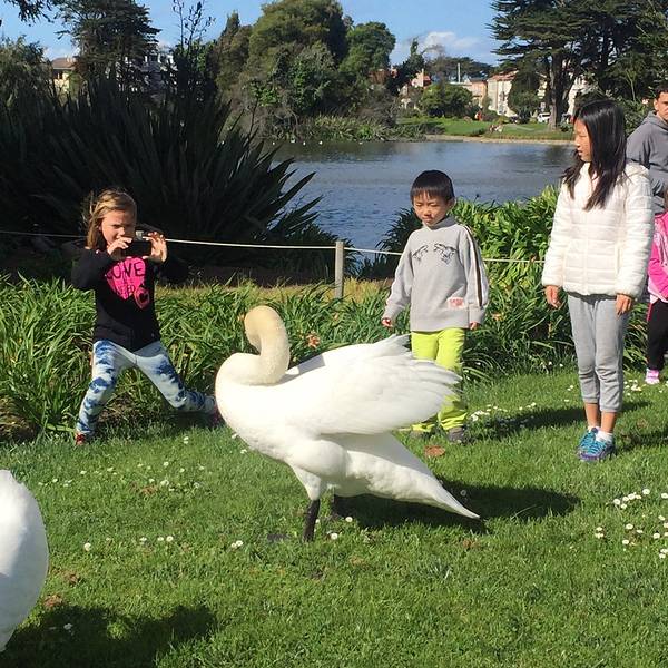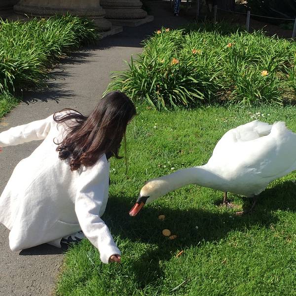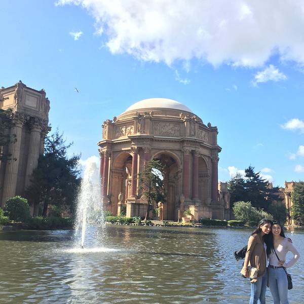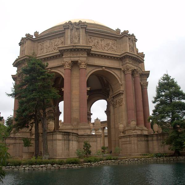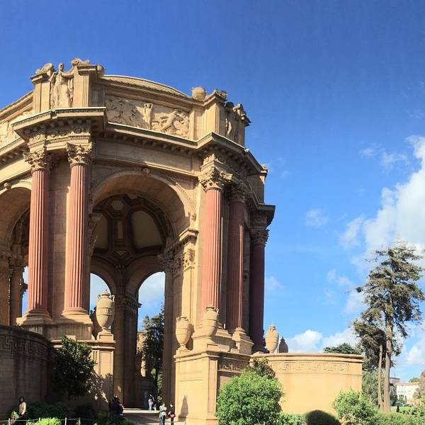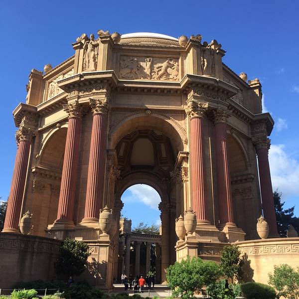 旧金山艺术宫Palace of Fine Arts是在渔人码头和金门大桥之间的一个小广场。在早年间,这个建筑会举办大型的宴会或表演,而现在日常生活成为游人游览旧金山市的一个景点。这个建筑十分古朴,走在其间有鲜花绿树相伴左右,十分惬意。艺术宫的面积不大,走马观花半小时到一个小时就可以游览完毕,但我喜欢找个没人的时间,在里面慢慢走,坐下来享受。艺术宫除了古朴的建筑,中心区域的水池也十分吸引人。经常能看到成群的鸭子,美丽的白天鹅和黑天鹅在水中游泳嬉戏,总能引来游客喂食,小朋友围观。另外,这个水池也给整个艺术宫带来了动感,赶上光照合适的时候艺术宫的倒影加上古朴的建筑绝对能形成一幅美丽的风景画。有时,艺术宫的广场内还会举办一些小型的音乐会等活动,也算热闹。