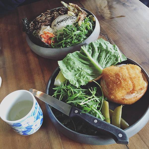 早餐在家附近韩国人开的餐厅吃的,我朋友点的好,仔细一看,石锅拌饭。哈哈!好多美国人看到石锅拌饭都喜欢,纷纷指着盘子说要这个。
