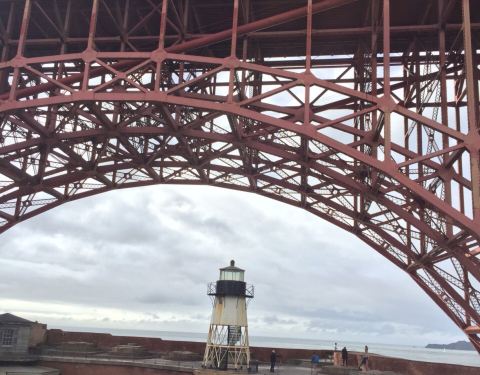 英文名叫Fort Point,也有翻译叫尖兵堡(角)。其坐落在金门大桥的南部桥底,正好是旧金山湾的入口处。1862年正式建成现在的样子,现在做为免费博物馆开放参观。因为这里停车不收费,而且可以远观金门大桥的全部...