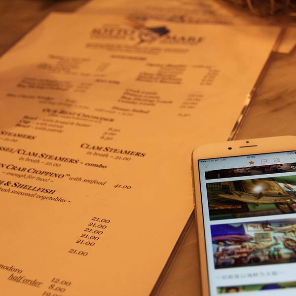 在阿拉莫广场的草坪晒了会太阳、臭美自拍后,就去吃饭了!二顾Sotto Mare Oysteria & Seafood,终于吃上!! 这家是意大利风味餐厅,所在区域也是意大利街区。虽然不是美式风味,但真的很好吃!在这里也是小有名气,在Yelp评分很高。个人觉得性价比比Crab House要高一些~餐厅也是很有年头了,装潢我很喜欢。一家主打海鲜美食的意大利小餐馆,别有风情!