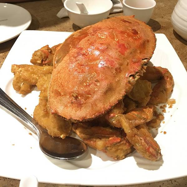这里很多人会推荐蟹,很大一个炸蟹售价43美元净价,炸的酥脆,实际吃起来一般,因为味道很淡,盐味也很淡,我自己加了一些胡椒和盐来吃,到最后还剩下了,推荐度一般。不过其他菜肴比如我们点的叉烧、牛腩味道都很好,推荐大家体验。麻婆豆腐这种川菜就没必要在这里点了,一份约130元人民币,还是加的番茄酱,味道实在是不地道。