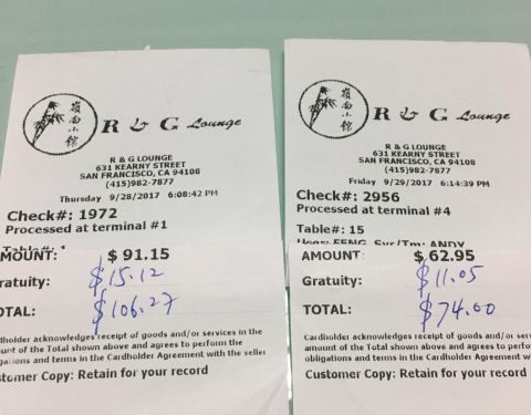 从黄石公园回到大城市非常想吃中餐,网上看到这家位于唐人街的R&G中餐人气非常了得,于是就来了两次。从联合广场步行过来大概20分钟。餐厅位于B1楼,两次都是下午5点多到的,所以没等位。椒盐蟹个头很大,炸得酥...从黄石公园回到大城市非常想吃中餐,网上看到这家位于唐人街的R&G中餐人气非常了得,于是就来了两次。从联合广场步行过来大概20分钟。餐厅位于B1楼,两次都是下午5点多到的,所以没等位。椒盐蟹个头很大,炸得酥脆,但包的面粉太多了。牛肉带子很实在,两样食材都很新鲜。其他菜都中规中距。价格偏贵,服务良好。