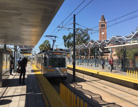坐地铁紫线、红线至Civic Center / Grand Park Station站。或坐60/37/路公交车~