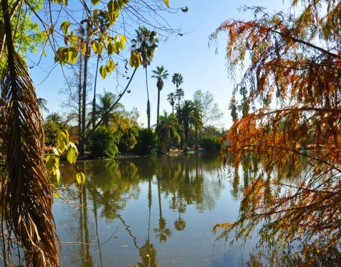 洛杉矶树木园,地处亚热带,收集的物种非常丰富, 面积约50余公顷, 最吸引我们的是丛林区, 它再现史前原始丛林的风貌, 看到很多古老的植物, 大树蔽日, 藤蔓缭绕, 林中时现枯枝倒木, 坑洼湿地, 水鸟水禽或游或栖, 一切尽显自然状态, 没有一点人为刻意营造的痕迹。